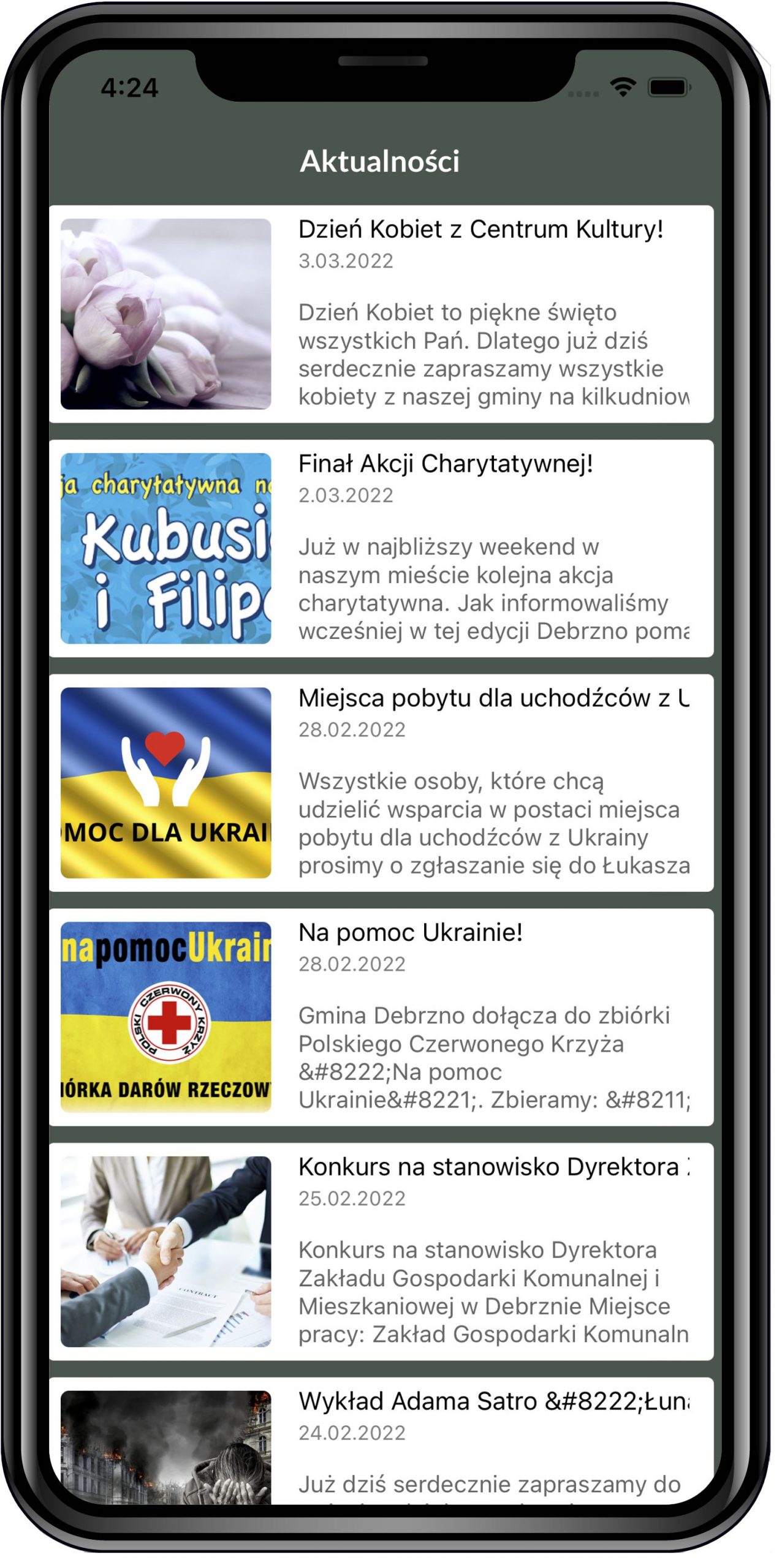 Wszystkie bieżące informacje dla mieszkańców w jednym miejscu. Możliwość wyświetlania wiadomości z różnych źródeł.